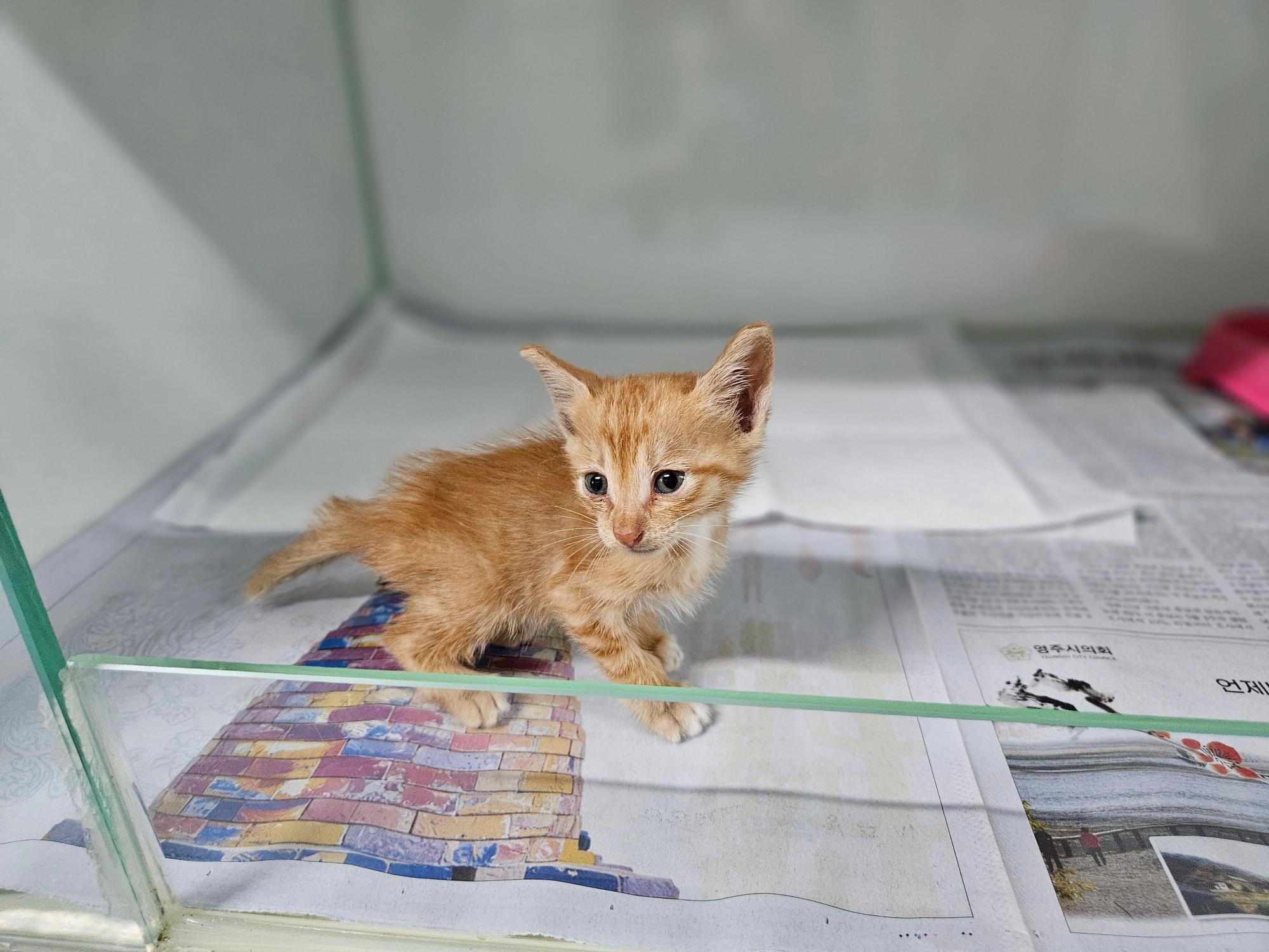 2개월, 길에서 고생 많이 했는지 말랐음ㅠㅠ, 목소리에 힘이 좀 없음, 잘 먹고 회복하자냥