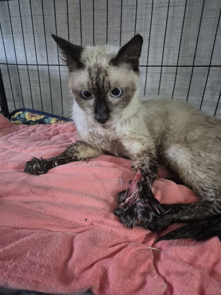왼쪽 앞다리 괴사로 수술 후 입소.
