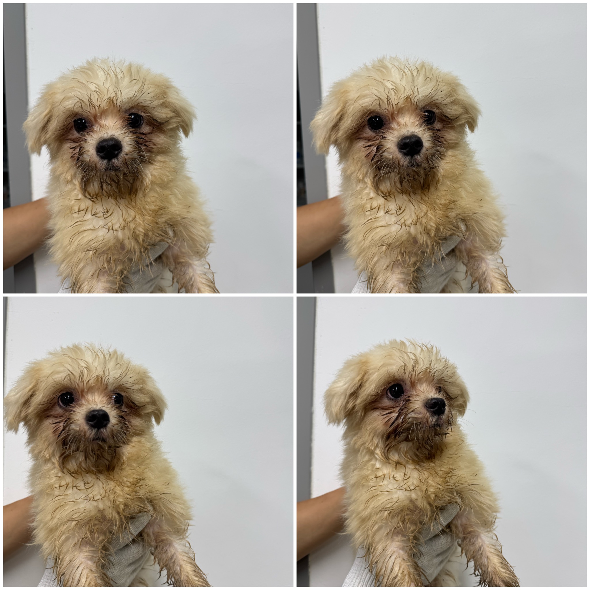 2.5개월령 추정의 귀여운 아기 강아지, 옴 피부병 치료중