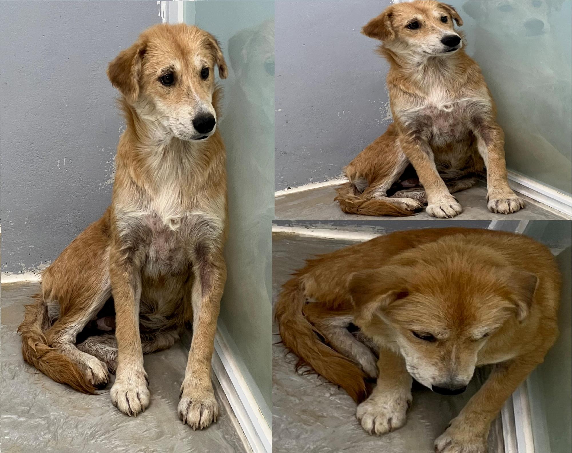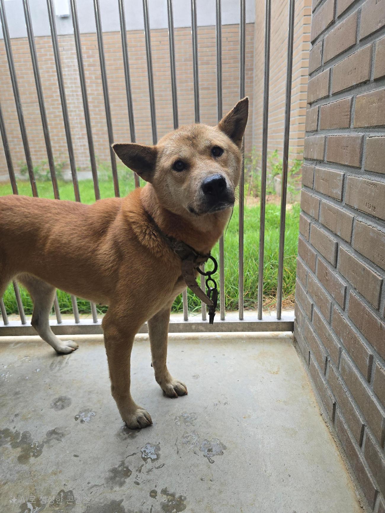 갈색 목줄 착용 상태로 입소 순하나 겁 많음
