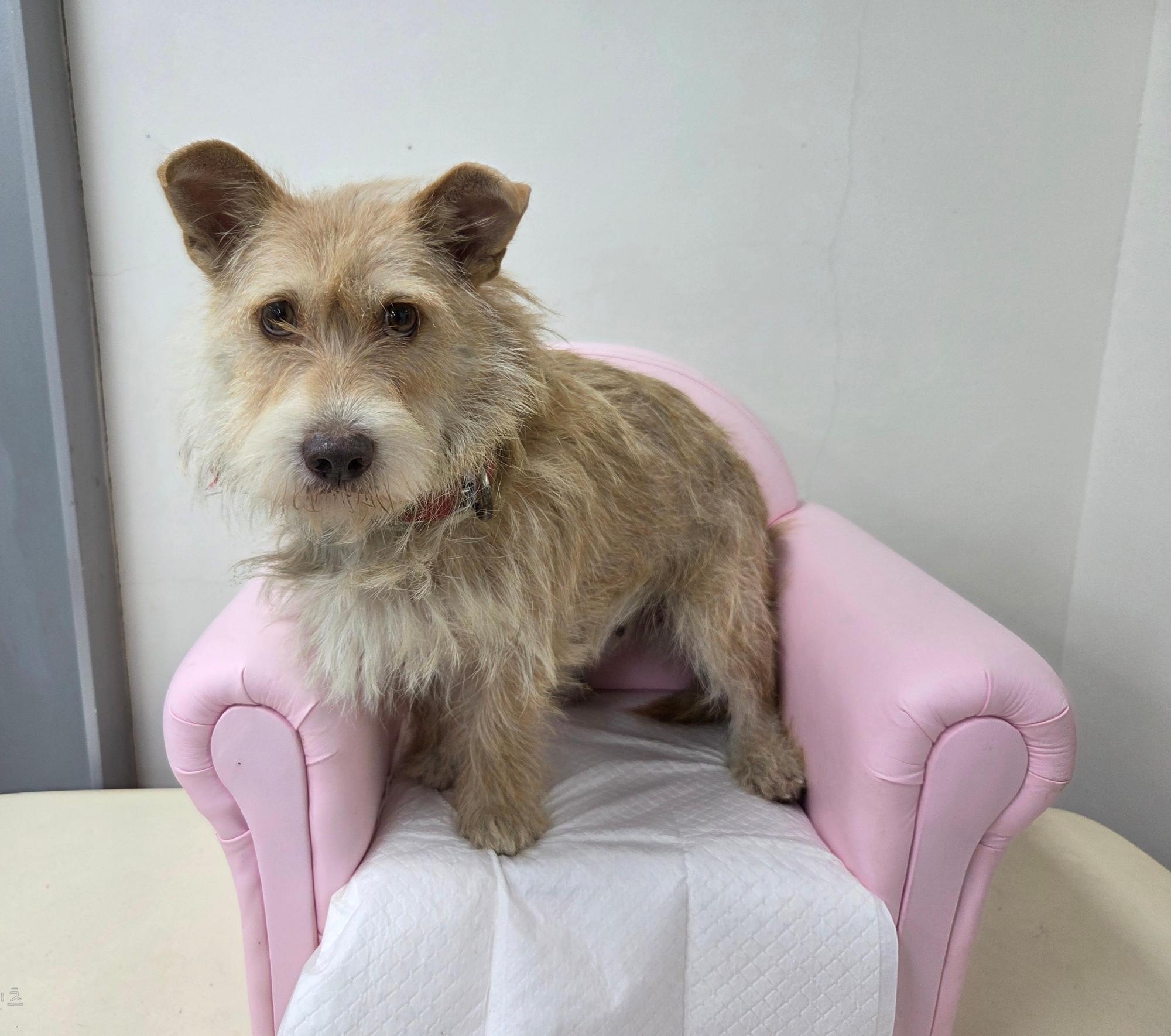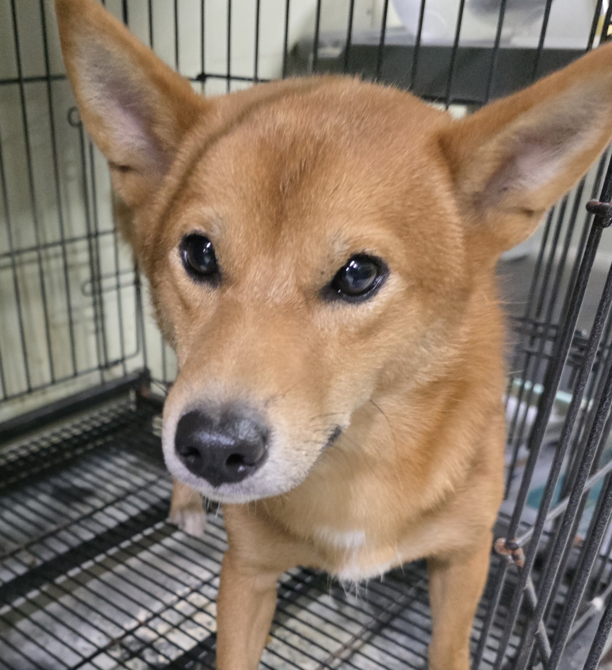 빨간 목줄 착용 눈이 슬퍼 보임 순하고 착합니다 보호자 분 어서 오세요