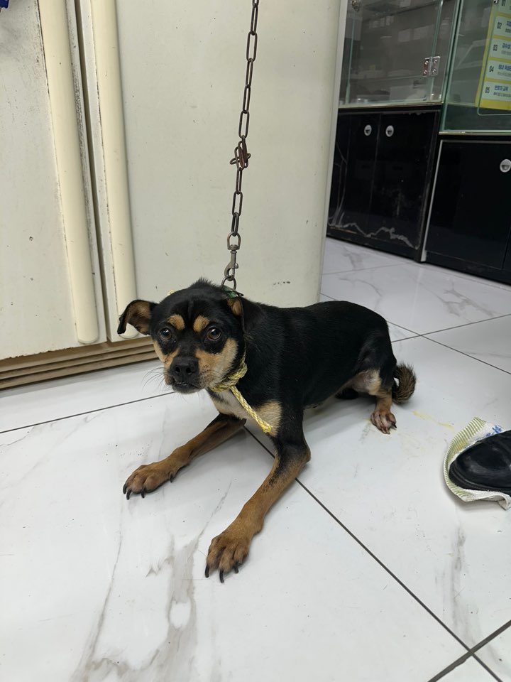 경계. 예민. 방어적 입질. 좌 전지 발톱 빠짐. 꼬리 단미 안됨. 털 약간 때탐.
