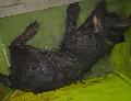 절에 들어가고 싶었는지 얼굴 대신 몸통 털을 민 고양이. 피부병 심함.